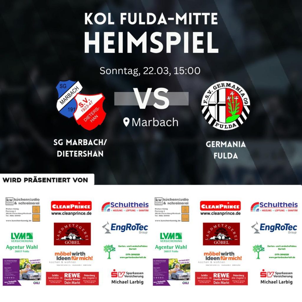 Am Wochenende stehen die nächsten Heimspiele an. Dabei spielt unsere 1. Mannschaft gegen den FSV Germania Fulda und unsere 2. Mannschaft spielt gegen die 2. Mannschaft der SG Giebelrain II