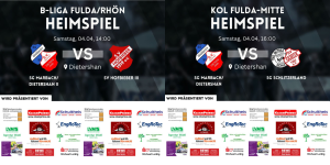 Am Wochenende stehen die nächsten Heimspiele an. Dabei spielt unsere 1. Mannschaft gegen den FSV Germania Fulda und unsere 2. Mannschaft spielt gegen die 2.